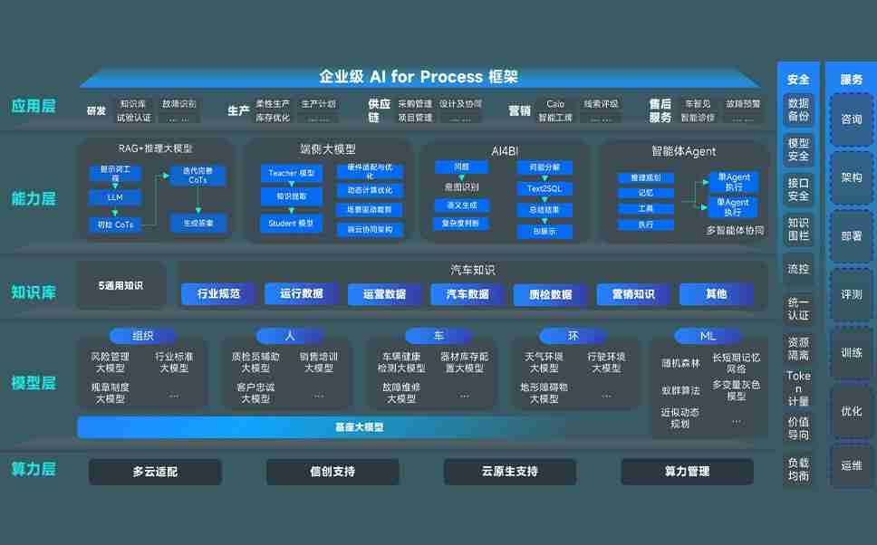 凯时尊龙问学智车解决方案是一套基于AI技术的汽车行业智能化系统,,,覆盖从底层算力到顶层AI应用的全栈方案。。。方案由算力层、、模型层和应用层组成:算力层,,方案支持多种一体机配置,,,具备云端灵活部署、、多云适配以及动态优化计算资源的能力;模型层,,,,凯时尊龙问学平台版提供了企业级AI应用一站式构建与管理平台,,,,支持基于后训练强化技术的汽车企业专属模型的训练、、、、评测和运营;应用层,,凯时尊龙问学DeepSeek版提供包括超级员工、、、、智能招采、、、、智能营销、、智能客服、、AI for BI等一系列解决方案,,,,可助力汽车行业实现数字化转型,,让管理更智能、、、、响应更敏捷。。。